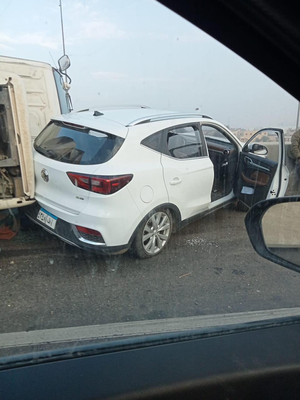 تصادم سيارة نقل بملاكي أعلى كوبري الوالدة بحلوان