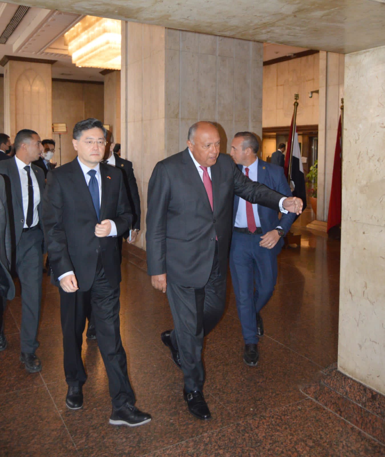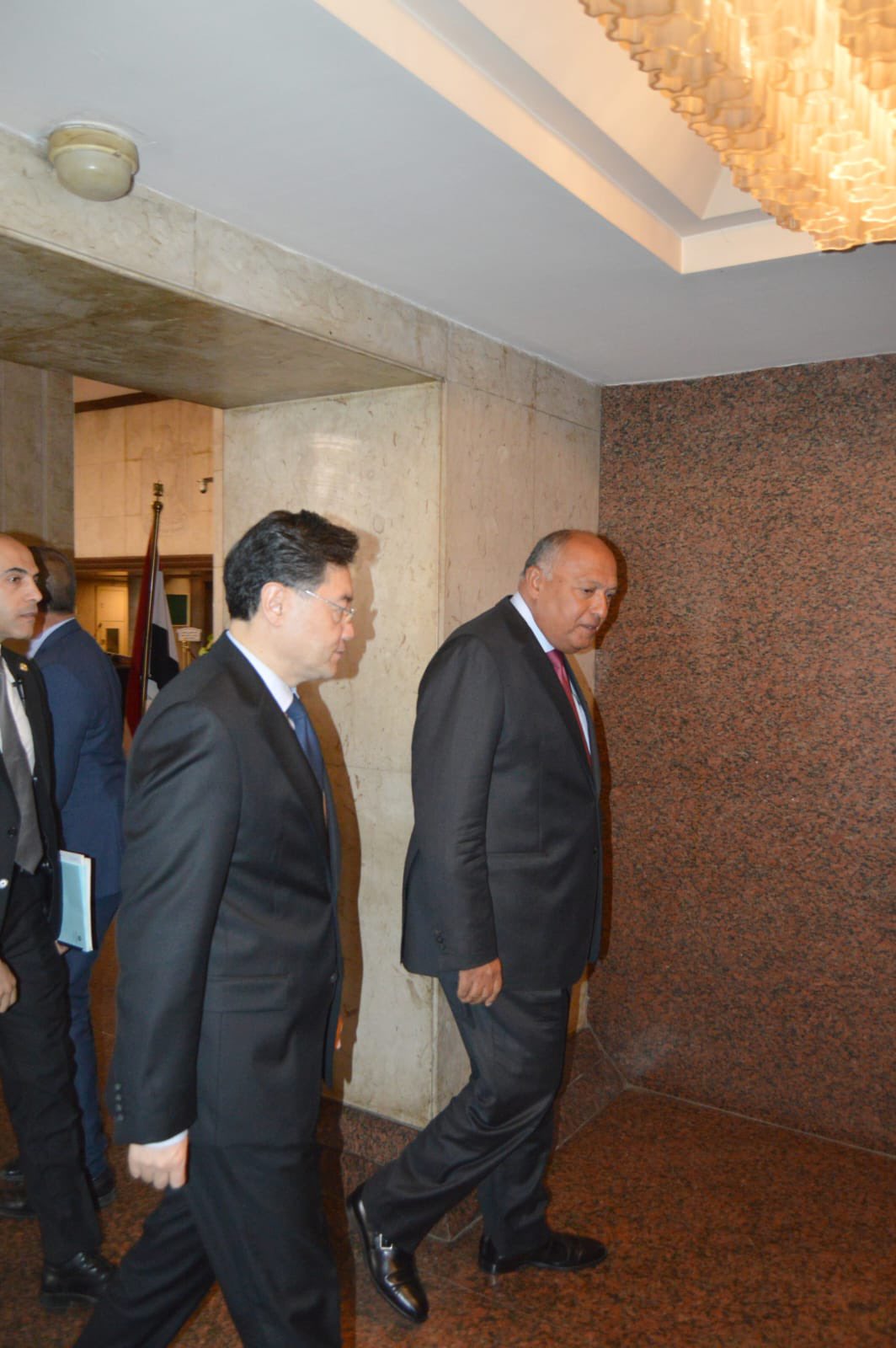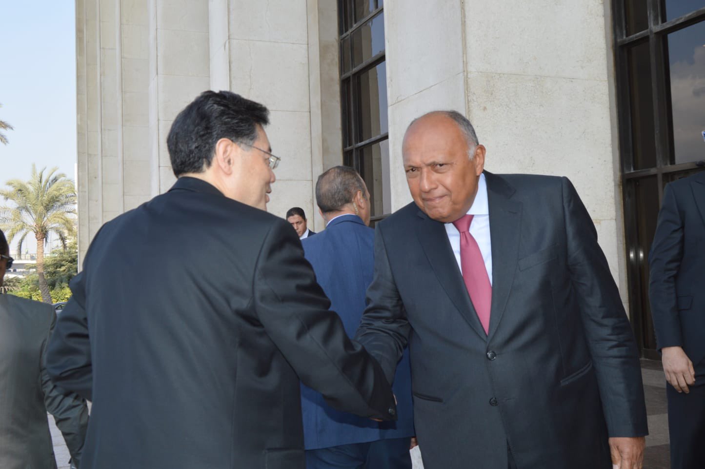 استقبل سامح شكري وزير الخارجية، نظيره الصيني، تشين قانج، حيث يجري الطرفان جلسة مباحثات ثنائية يعقبها مؤتمر صحفي مشترك.
