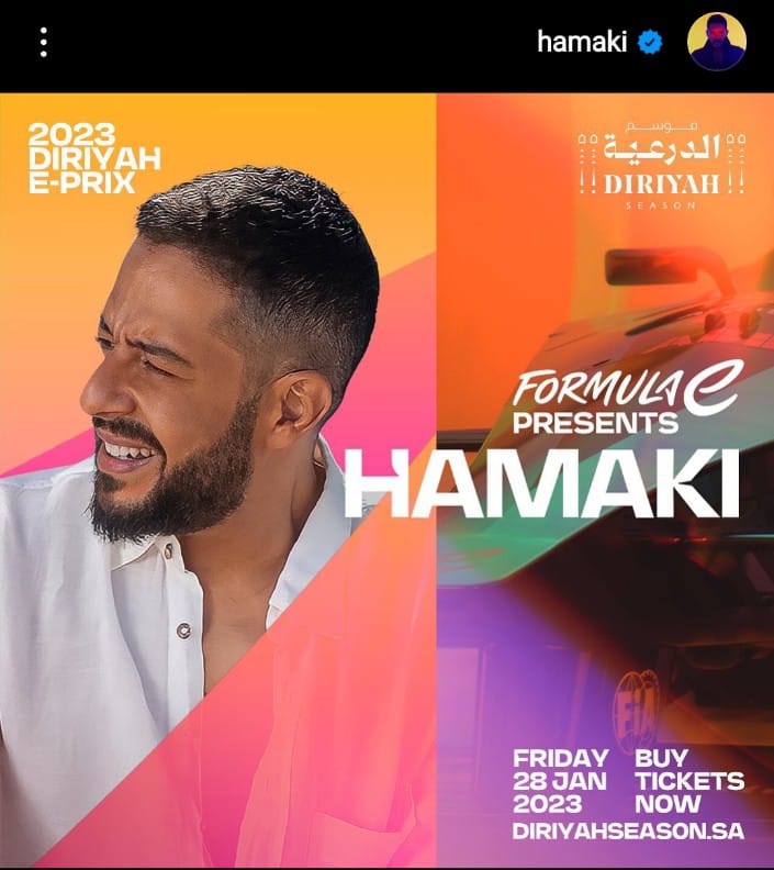 ومؤخرًا، أحيا حماقي حفلًا بالسعودية ضمن فعاليات موسم الرياض، يوم الجمعة الموافق 6 يناير الجاري، وذلك على مسرح أبو بكر سالم في بوليفارد رياض سيتي، برفقة مطرب الراب DABABY، وحضر الحفل عدد كبير من جمهور الفنان.
