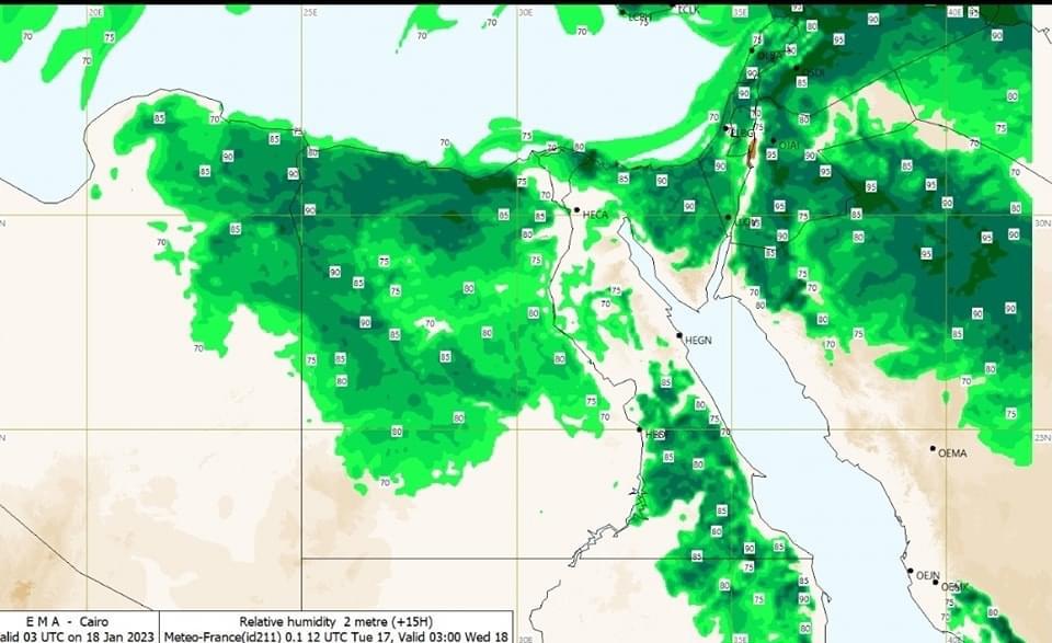 وقالت هيئة الأرصاد في بيانها: تبقى الظاهرة المؤثرة على البلاد هي الشبورة المائية صباحًا، وذلك على الطرق الزراعية والقريبة من المسطحات المائية المؤدية من وإلى القاهرة.