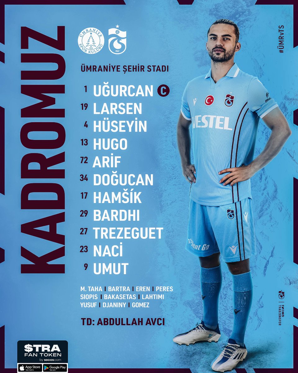 ويتواجد تريزيجيه في التشكيل الأساسي لفريق طرابزون سبور لمواجهة عمراني سبور، وذلك في المباراة التي يسعى من خلالها النجم الدولي المصري ورفاقه لخطف بطاقة التأهل إلى دور ربع النهائي.