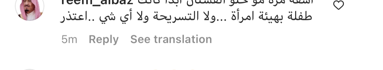 كما كتبت إحد المتابعات عبر إنستجرام: آسفة بس الفستان مش حلو شكلك طفلة بهيئة امرأة.. ولا التسريحة ولا أي شيء.. بعتذر.