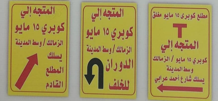 - حركة المركبات القادمة من شارع جامعة الدول العربية، وترغب بالصعود أعلى كوبري مايو اتجاه مناطق الزمالك - وسط القاهرة تستكمل السير باتجاه شارع أحمد عرابي.
