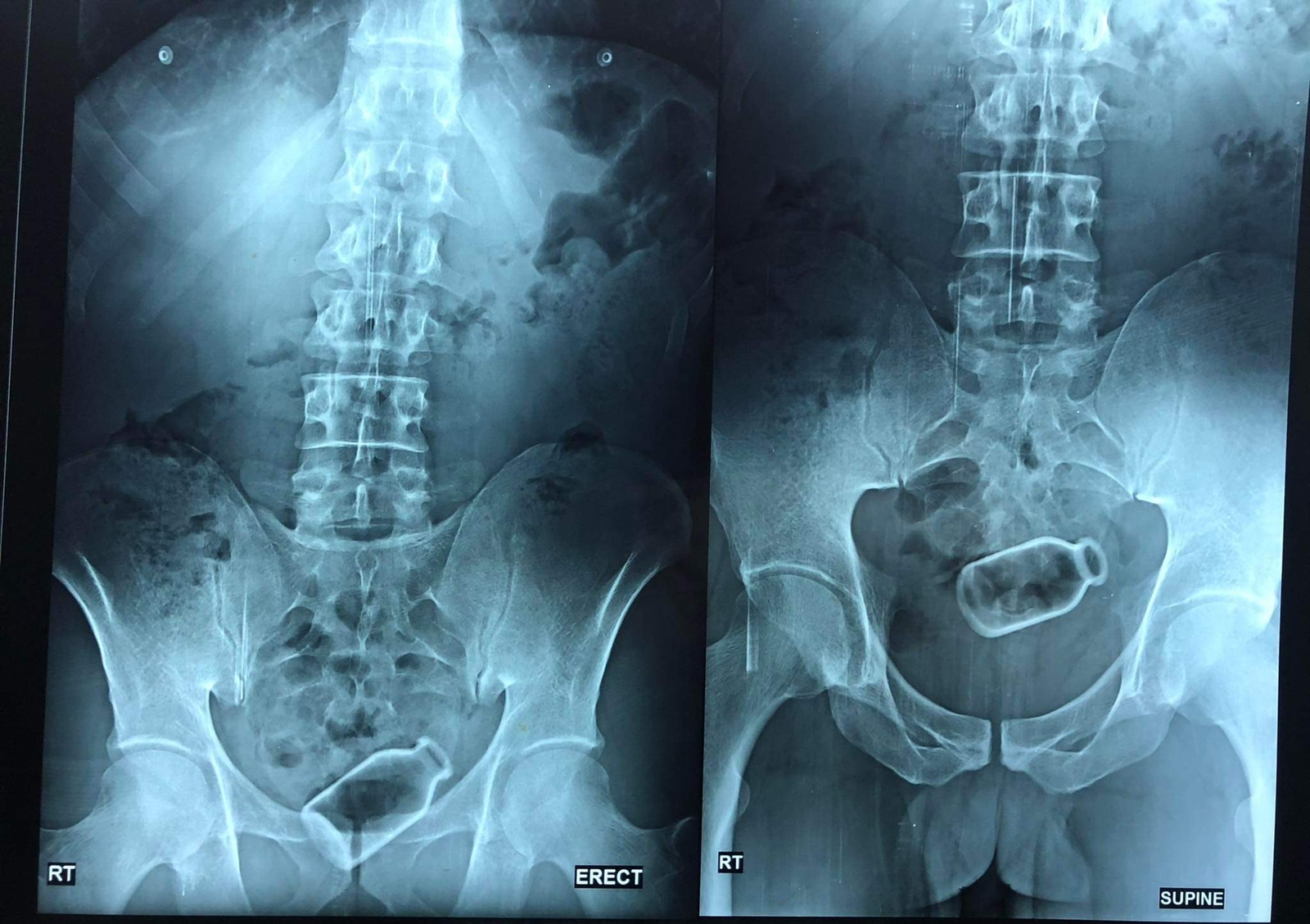وأضافت دكتورة أسماء: عمل المريض بنصيحة الشخص، وأثناء محاولته لتنفيذ تلك العملية، دخلت الزجاجة إلى القولون ولم يستطع استخراجها، ولم يخبر المريض أحدا بذلك إلا بعد فترة أخبر أخاه.