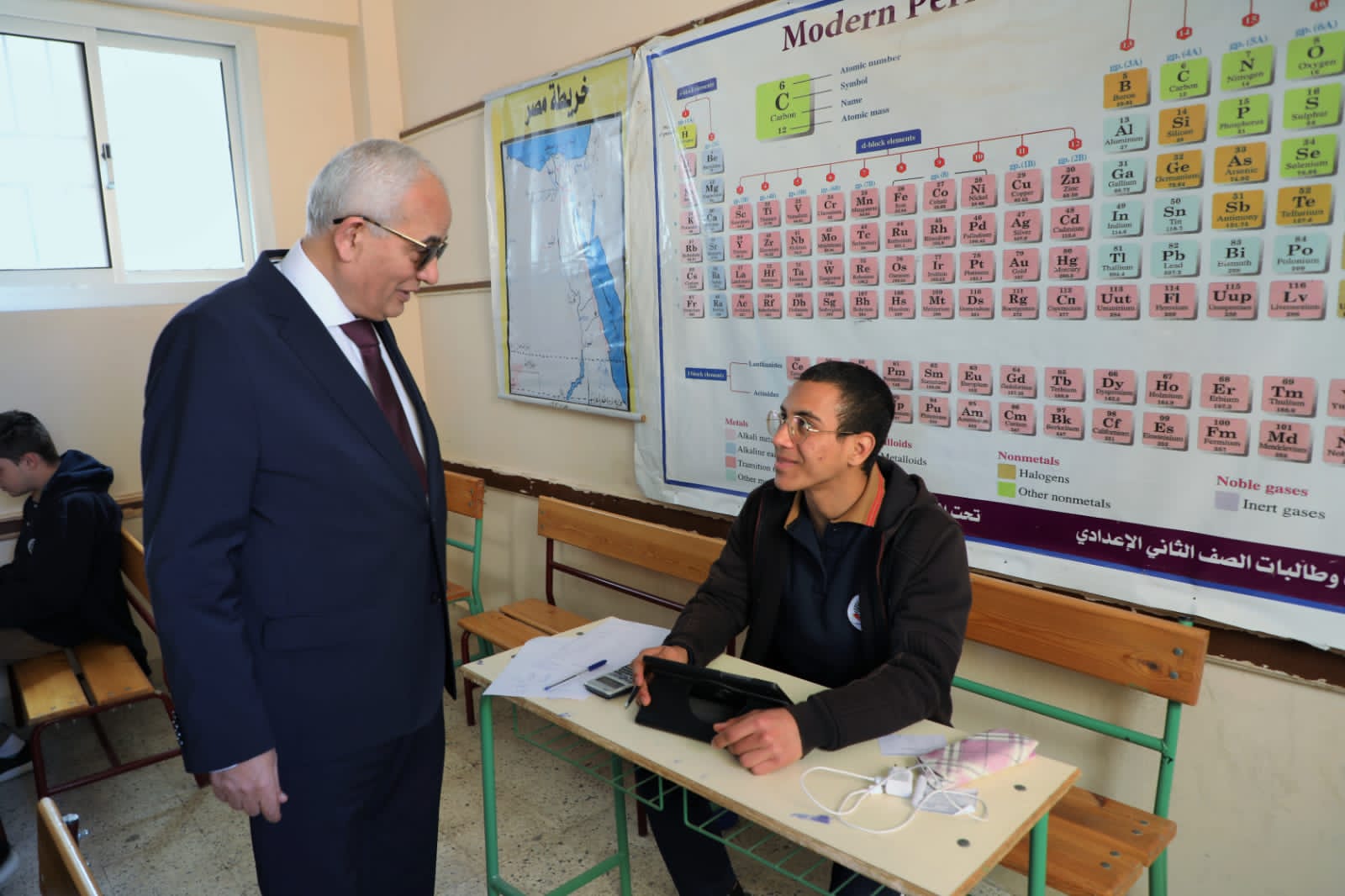 وبدأ الوزير جولته بتفقد عدد من لجان امتحان الشهادة الإعدادية بالمدرسة، حيث يؤدي طلابها وعددهم397، في 20 لجنة، امتحان مادة الدراسات الاجتماعية "فترة أولى"، وامتحان مادة الحاسب الآلي والتكنولوجيا "فترة ثانية"، وحرص الوزير على مناقشة عدد من الطلاب والطالبات حول مستوى الامتحان، وتأكد من وضوح الورقة الامتحانية، وعدم وجود أي شكاوى من الأسئلة، فضلًا عن تطبيق كافة الإجراءات الوقائية والاحترازية، والحفاظ على تحقيق التباعد الاجتماعي بين الطلاب داخل اللجان.