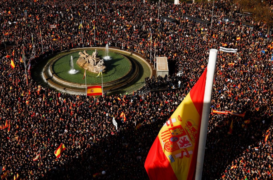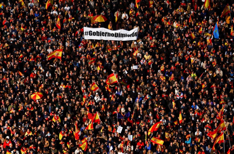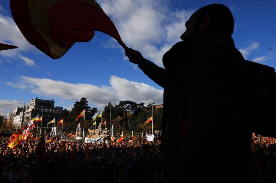 احتشد الآلاف وسط العاصمة الإسبانية مدريد اليوم السبت، وذلك للاحتجاج على الحكومة الحالية متهميها بتقويض الدستور، وذلك في تجمع حاشد تدعمه الأحزاب اليمينية، وفقًا لما أفادت به وكالة رويترز.