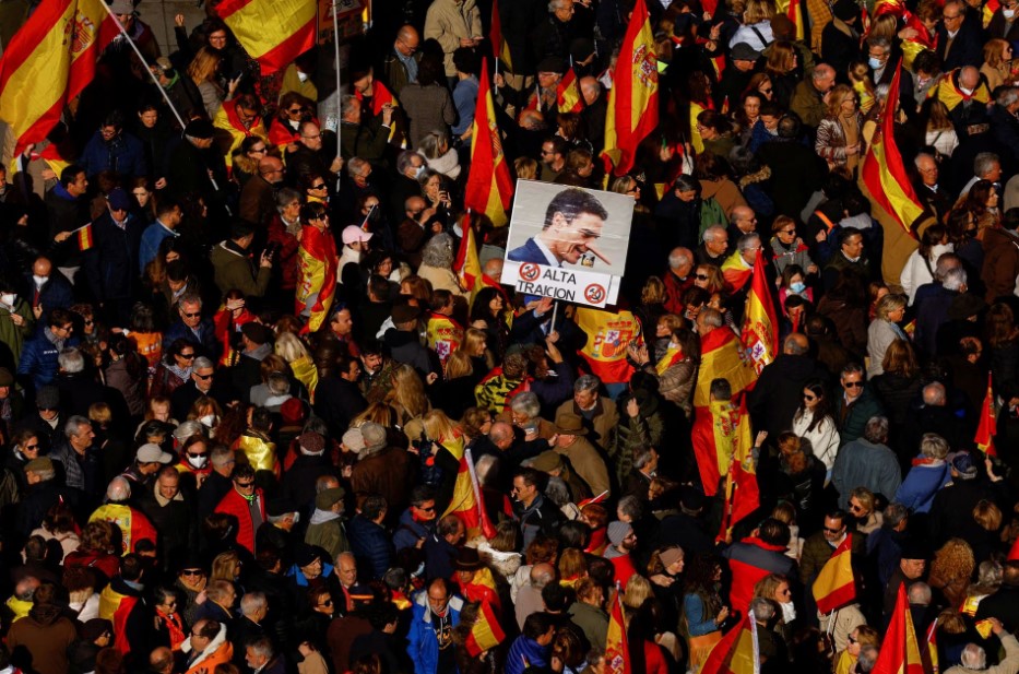 وهاجم المتظاهرون الحكومة بسبب سلسلة من السياسات والقرارات، بدءًا من إطلاق سراح دعاة الاستقلال الكاتالونيين إلى اتفاقياتها مع الأحزاب الانفصالية الإقليمية، حيث شارك نحو 30 ألف شخص في المظاهرات، وفقًا لتقديرات الحكومة المحلية.