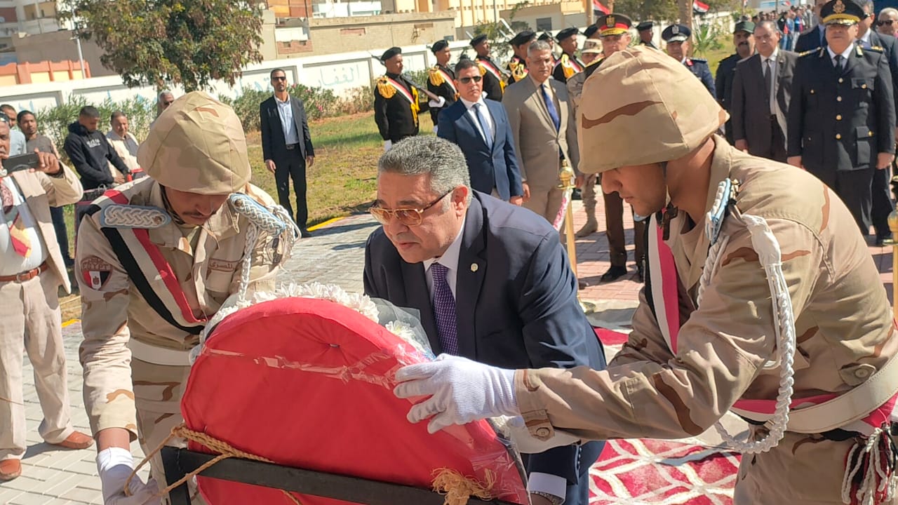 محافظ البحر الأحمر يضع إكليلا من الزهور على النصب التذكاري لشهداء معركة شدوان| صور