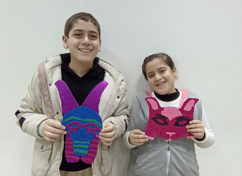 كما تضمنت الورشة تطبيقا عمليا قدمته نورا مصطفى إسماعيل، تم خلاله تنفيذ أقنعة بسيطة مستوحاة من أشكال بعض رموز الآلهة المصرية القديمة منها، أنوبيس وسخمت وماعت ونوت، وفي نهاية الورشة شارك الأطفال والتلاميذ في لعبة كروت الذاكرة، كما تم توزيع كتيب عليهم يحتوي على العديد من الرسوم المعدة للتلوين، وتضم العديد من الرموز المرتبطة بعقيدة الحضارات المتعاقبة على أرض مصر.