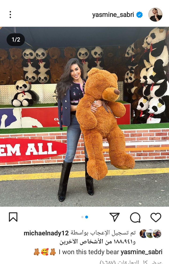 ونشرت ياسمين صبري، الصورة عبر حسابها الشخصي بموقع انستجرام، وعلقت عليها قائلة: اريد الدبدوب.