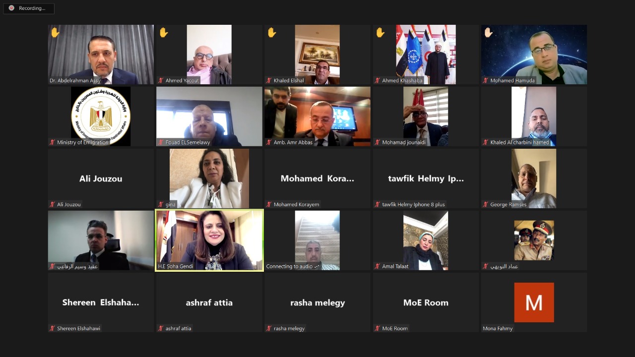 التقت السفيرة سها جندي وزيرة الدولة للهجرة وشئون المصريين بالخارج أعضاء ورموز من الجالية المصرية في لبنان وسلطنة عمان، عبر تطبيق زووم الإلكتروني، ضمن مبادرة ساعة مع الوزيرة، للتعرف على الأوضاع والتحديات التي تواجه الجاليتين، والاستماع إلى أفكارهم وأطروحاتهم، للعمل على تلبية احتياجاتهم المختلفة.