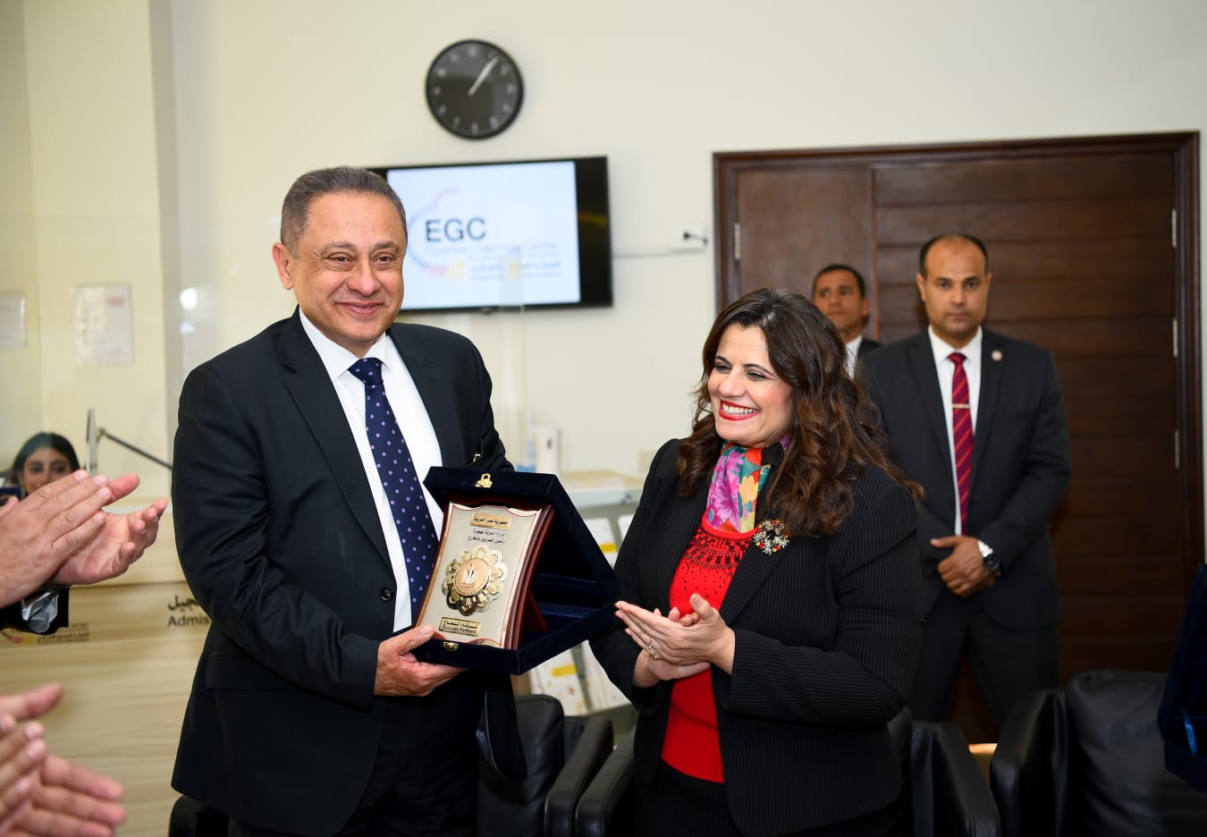 وفي ختام الزيارة، وجهت السفيرة سها جندي بالغ الشكر للسفير محمد خيرت مساعد وزيرة الهجرة للتعاون الدولي، على كافة الجهود المبذولة من أجل تعزيز المركز والارتقاء به، ومنحته درع التميز تكريما وتقديرا له، ثم قامت سيادتها أيضا بمنح دروع التميز لكل من السيد/ فيصل العتيبي الملحق العمالي السعودي بالقاهرة، أندرياس أدريان منسق قطاع التعليم الفني وسوق العمل بالوكالة الألمانية للتعاون الدولي GIZ، تكريما لهما وتقديرا لدورهما.