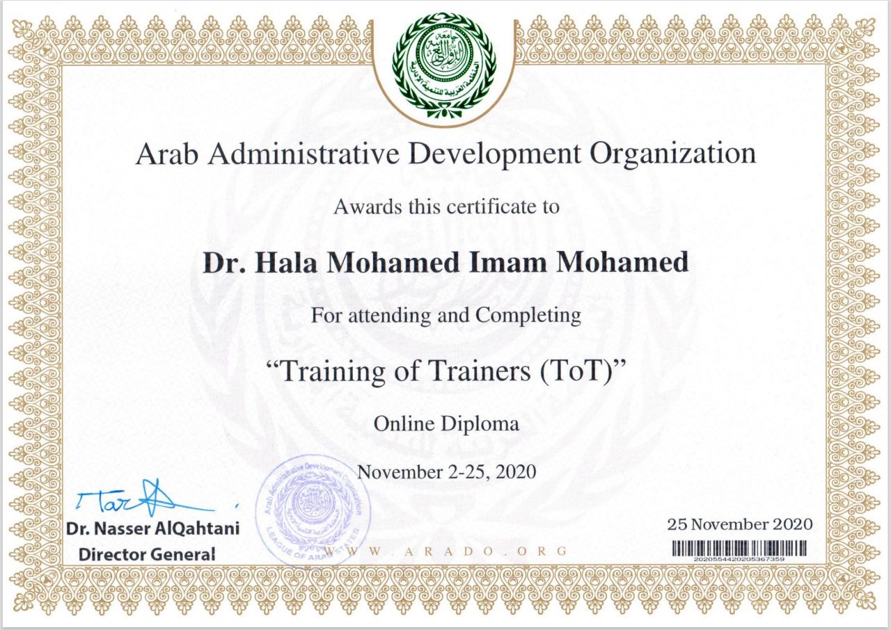 لم تقف هالة في تدرجها العلمي عند هذا الحد، بل حصلت أيضًا على دبلوم في قيادة المرأة عربيًا وإقليميًا، مع حصولها على دبلوم تدريب المدربين من جامعة الدول العربية منظمة التنمية الإدارية، كما حصلت على الدبلوم المهني المصغر في إدارة الأعمال، إلى جانب حصولها على دبلوم في مهارات البحث العلمي المتقد.