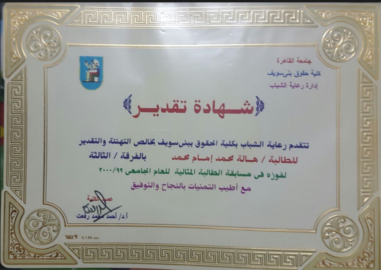 تكريمات هالة خلال مشواها القانوني