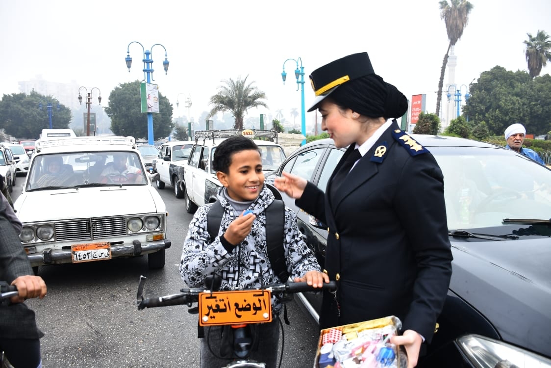 بالورد والشوكولاتة.. ضابطات يحتفلن مع المواطنين بعيد الشرطة 71 | صور