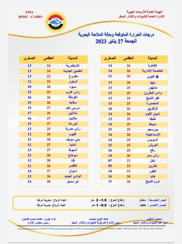 ارتفاع درجات الحرارة.. حالة الطقس غدًا الجمعة 27 يناير 2023