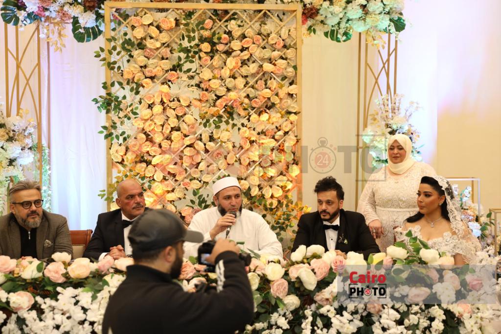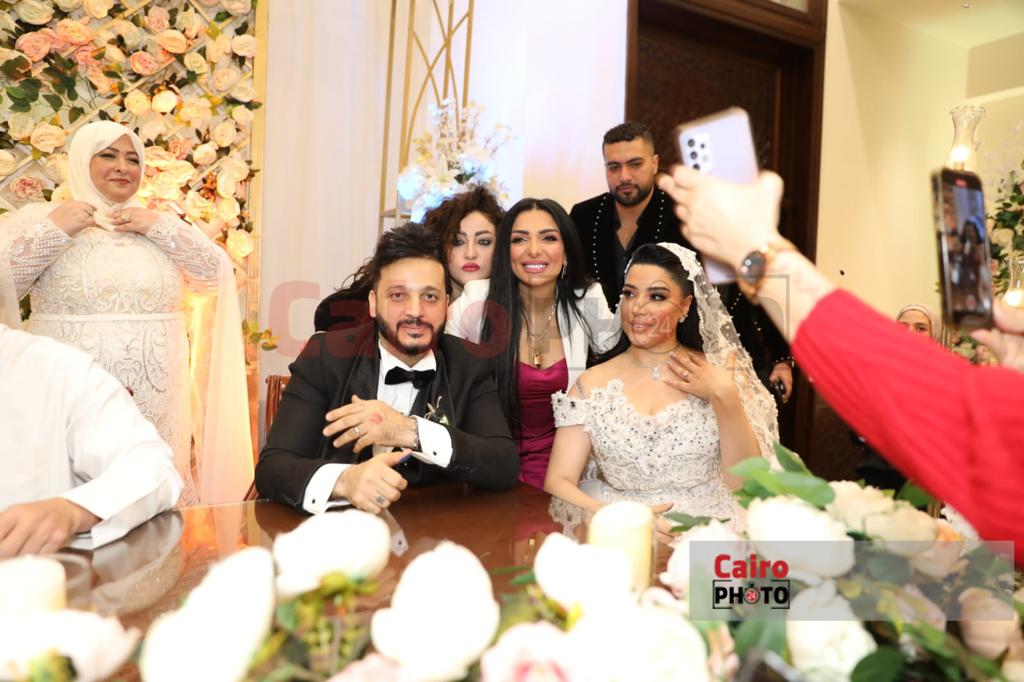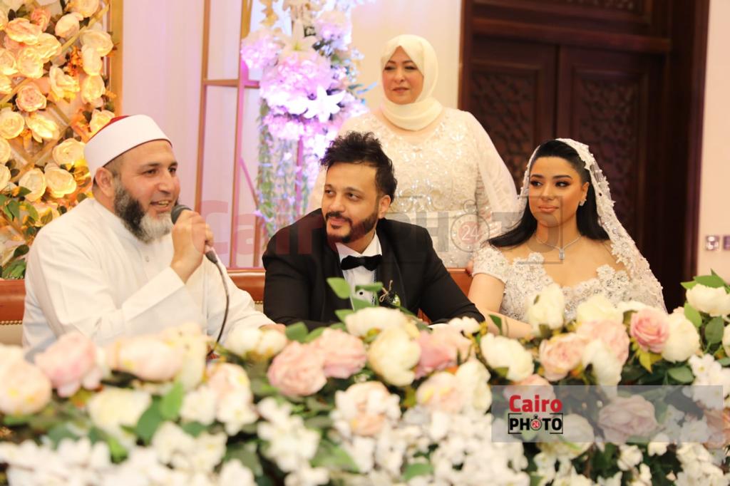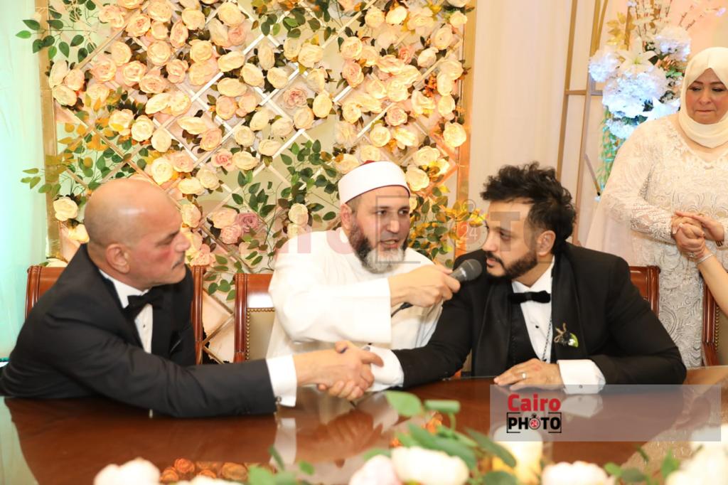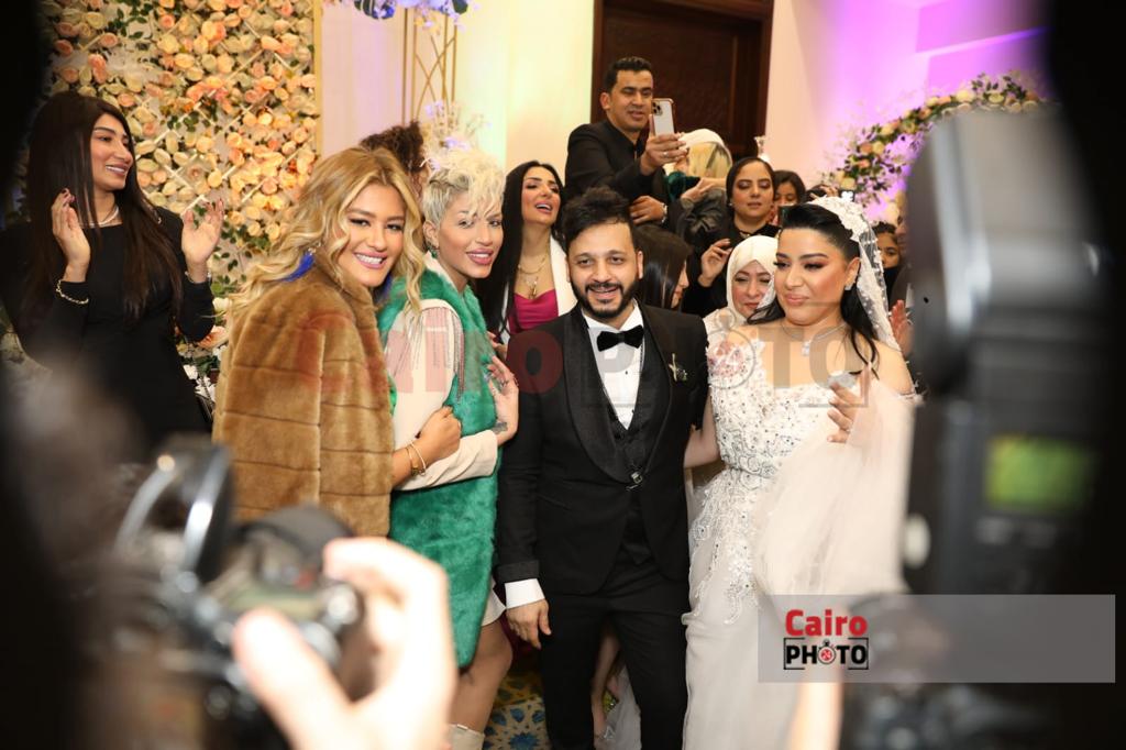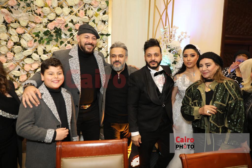 وكان على رأس حضور حفل الزفاف بمسجد ودار المناسبات في مدينتي، الفنان أحمد التهامي والفنان رامي وحيد.
