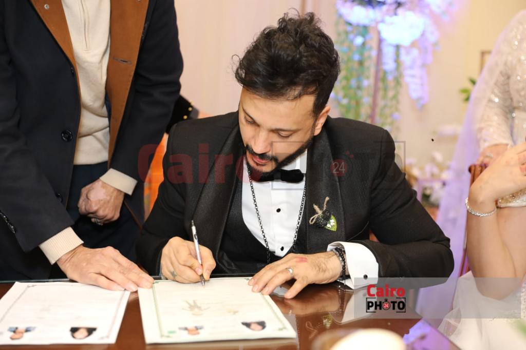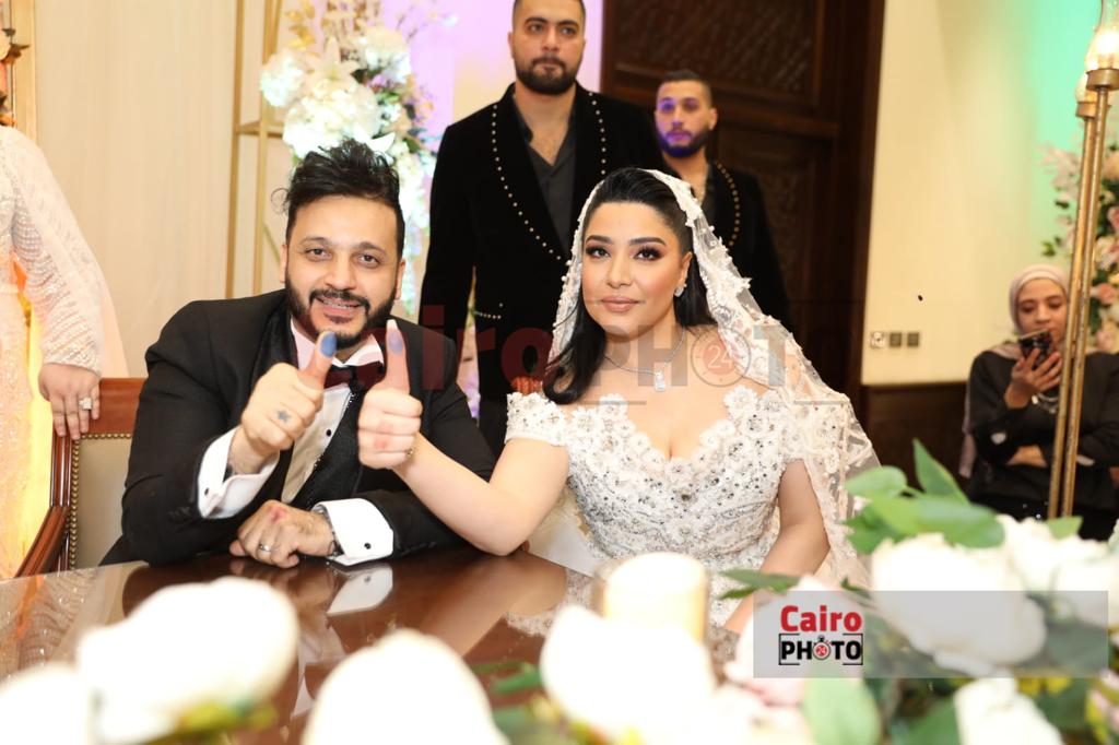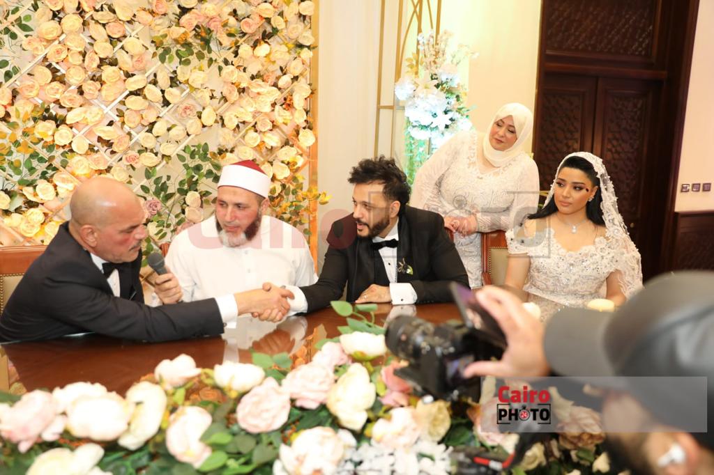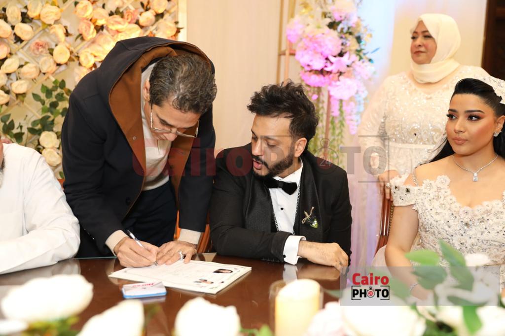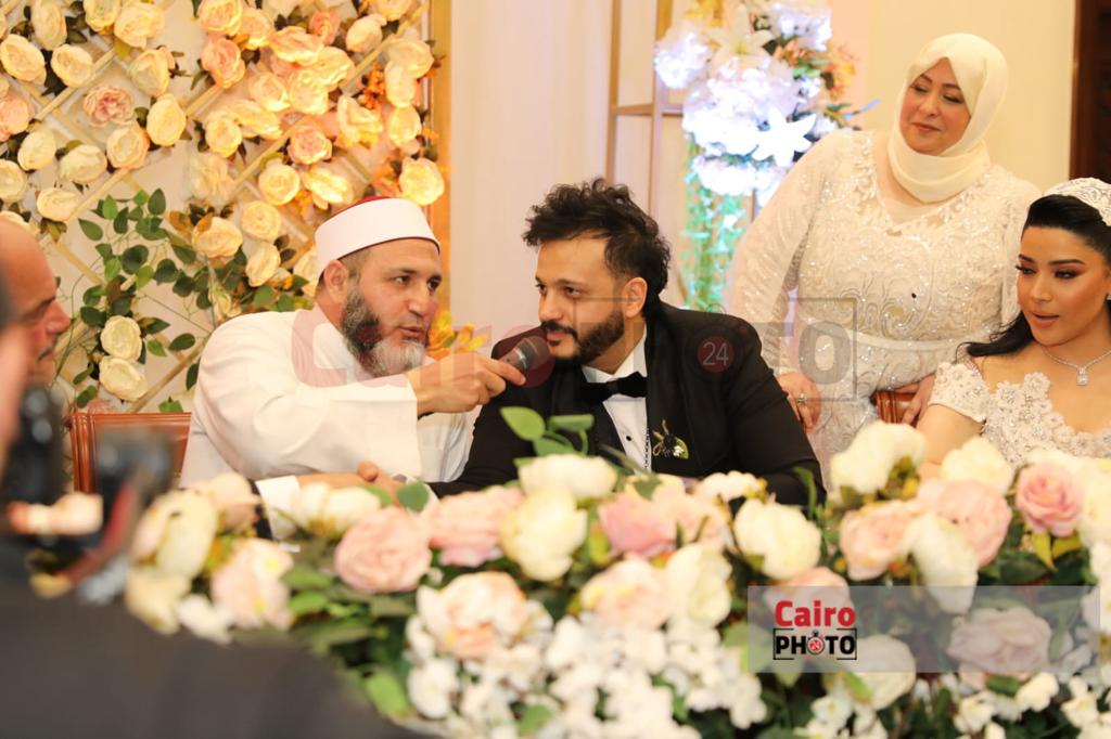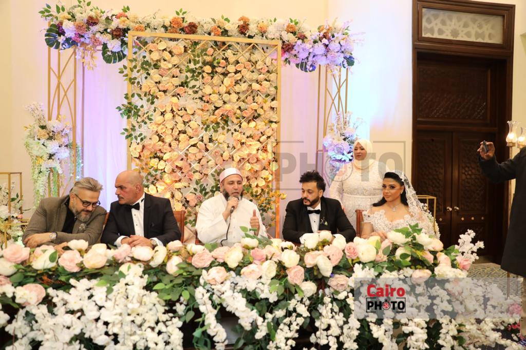 وكان على رأس حضور حفل الزفاف بمسجد ودار المناسبات في مدينتي، الفنان أحمد التهامي والفنان رامي وحيد.