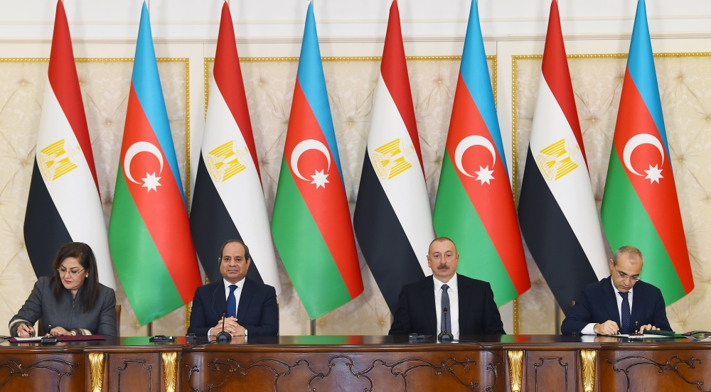 أقيم اليوم بدولة أذربيجان، حفل توقيع للوثائق بين المسؤولين في دولة أذربيجان ومصر، وذلك عقب الاجتماع الموسع بين الرئيس السيسي ونظيره الأذري إلهام علييف، وفقا لما أفادت به وكالة أنباء أذربيجان الحكومية.