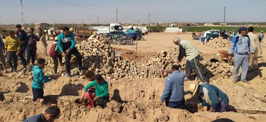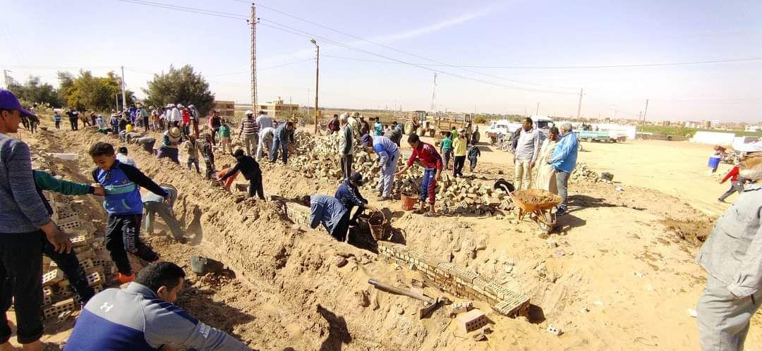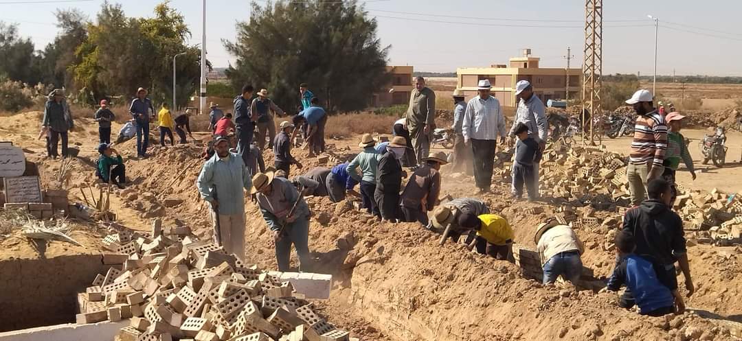 لبوا نداء الخير.. أهالي قرية يتجمعون لحفر وبناء مقابر في الوادى الجديد| صور