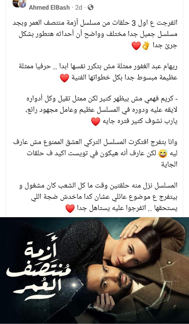 يتشابه مع العشق الممنوع.. مسلسل أزمة منتصف العمر يواجه انتقادات بسبب قصة حب ريهام عبد الغفور وكريم فهمي