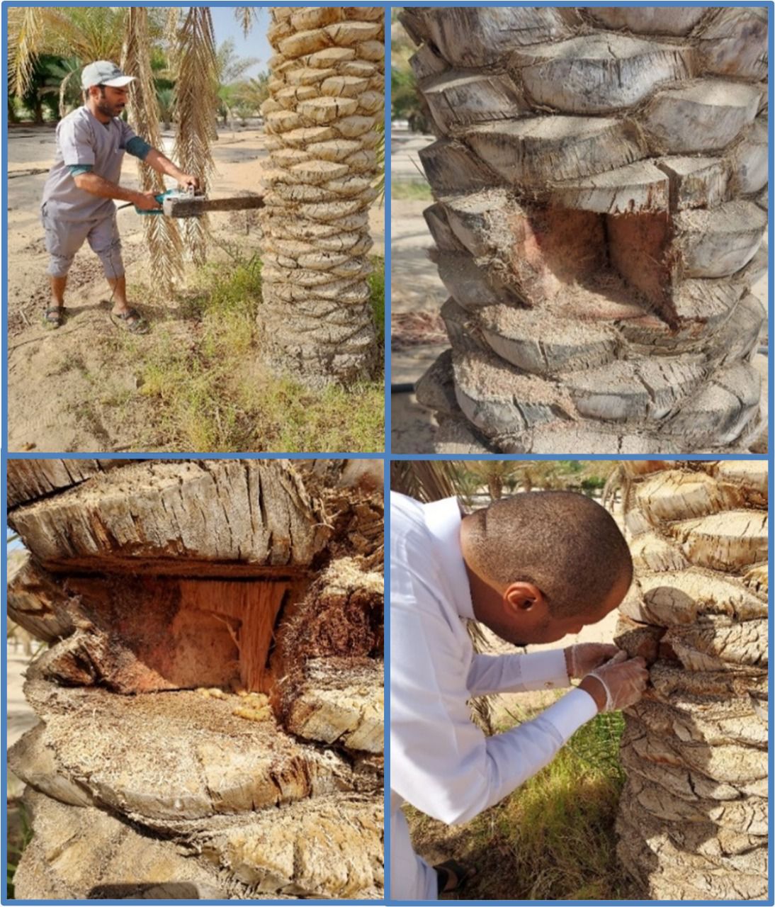 وخلال الدراسة، تم إجراء سلسلة من التجارب المخبرية وشبه الميدانية والميدانية على جانبين من جوانب المشروع، وهما تطوير بروتوكول الحجر الزراعي لشتلات النخيل وتقييم تقنيات وأدوات الحقن لمكافحة إصابات جذع أشجار النخيل بسوسة النخيل الحمراء.