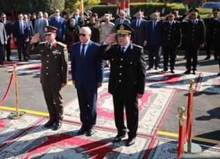 وضعت القيادات الأمنية بمديريات الأمن وقيادات القوات المسلحة والمحافظين، أكاليل الزهور على النصب التذكاري لشهداء الشرطة.