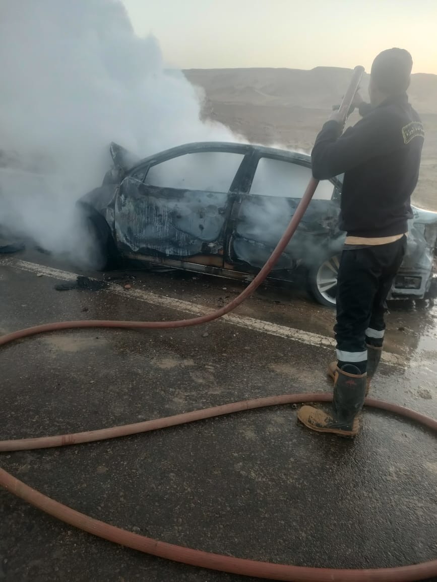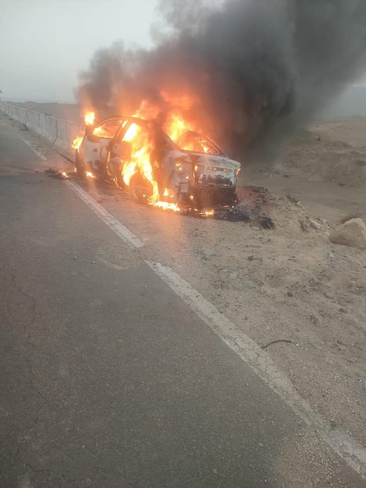 تفاصيل مصرع 5 أفراد من أسرة واحدة في احتراق سيارتهم على طريق الواحات | صور