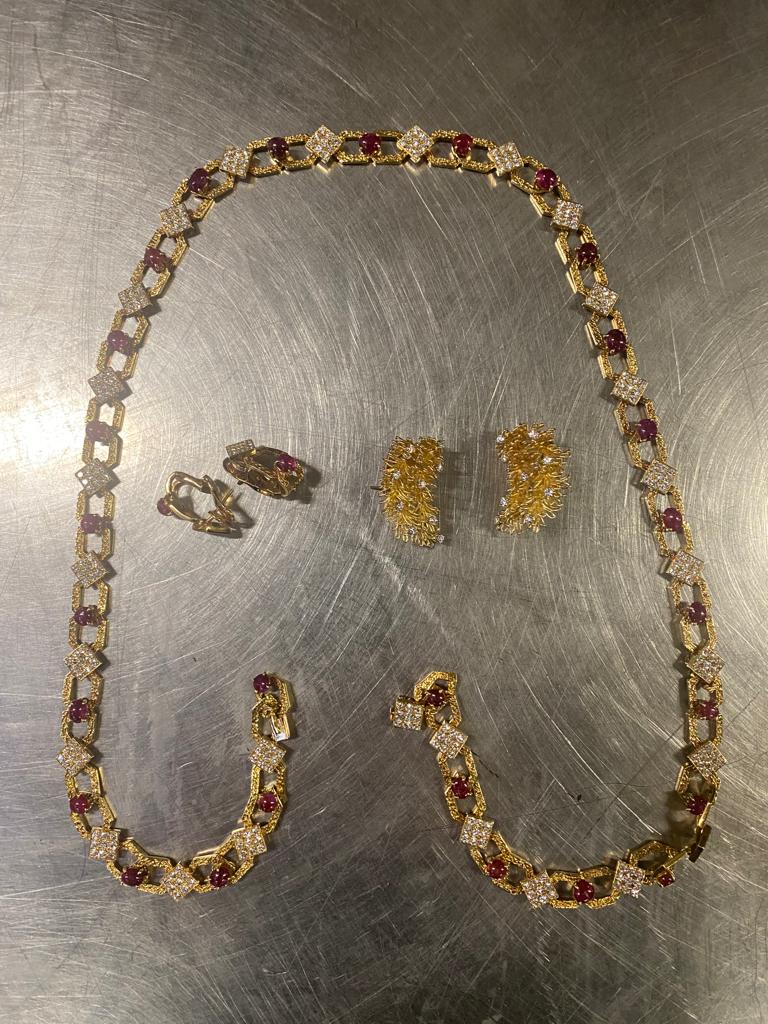 وتابعت جمارك مطار القاهرة: كلّف تامر قاسم مدير الجمرك لجنة مكونة من أحمد صبري وحسام الشافعي وكريم يوسف مأموري الجمرك بتفتيش جميع حقائب الراكب بدقة؛ ما أسفر عن العثور على علب فارغة أخرى، فكلّف كلًّا من هاني محمود وأحمد عادل فتحي مأموري الجمرك بتفتيش الراكب ذاتيًّا في حضور بكري عزب رئيس القسم بإدارة الأمن الجمركي؛ ما أسفر عن ضبط كيس من القماش داخله حلق من الذهب مرصع بفصوص من الأحجار الكريمة، وكيس آخر داخله حلق مرصع بفصوص أيضًا و"كوليه" من الذهب مرصع بفصوص ملونة من الأحجار الكريمة.