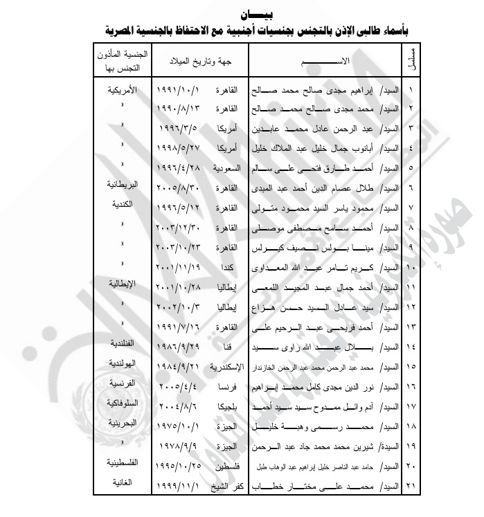 مع احتفاظهم بالمصرية.. ننشر أسماء الحاصلين على جنسيات أجنبية | مستند