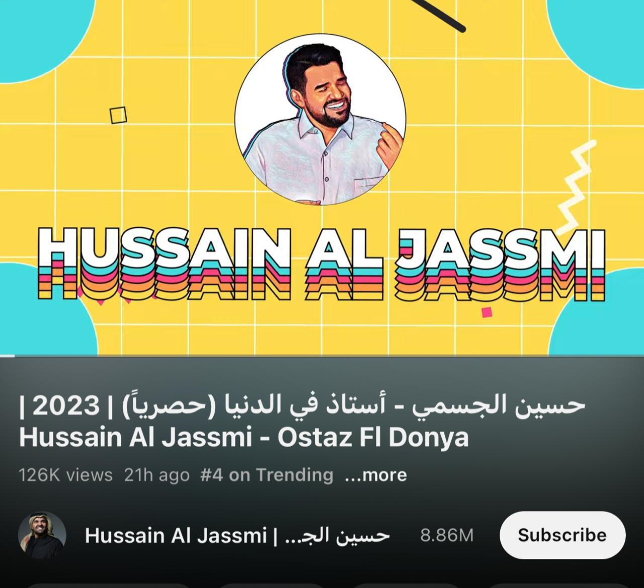 حسين الجسمي يتصدر تريند يوتيوب بعد ساعات من طرح أستاذ في الدنيا