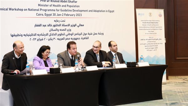 جاء ذلك خلال كلمة الوزير، اليوم الخميس، في ختام ورشة العمل الخاصة بالبرنامج الوطني لتطوير وتوحيد الدلائل الاسترشادية الطبية في كافة التخصصات الطبية، والتي عقدت في الفترة من 30 يناير وحتى اليوم 2 فبراير 2023، بالتعاون مع منظمة الصحة العالمية، وبحضور قيادات الوزارة وممثلي مختلف الجهات المعنية.