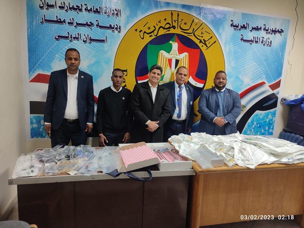 إحباط محاولة تهريب كمية كبيرة من المستلزمات الطبية بالتنسيق بين جمارك مطاري القاهرة وأسوان | صور