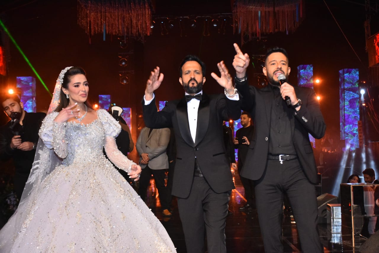 حماقي وماجد المصري يشاركان محمد منير غناء الليلة يا سمرة في زفاف أحمد عصام