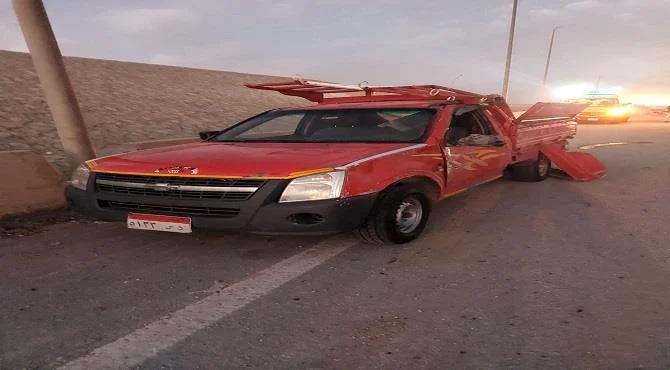 وكشفت المعاينة الأولية أنه خلال سير سيارة ربع نقل محملة بالعمال أعلى الطريق الإقليمي القادم من العاصمة اتجاه الفيوم قبل نفق كارتة حلوان بدائرة المركز، اختلت عجلة القيادة.