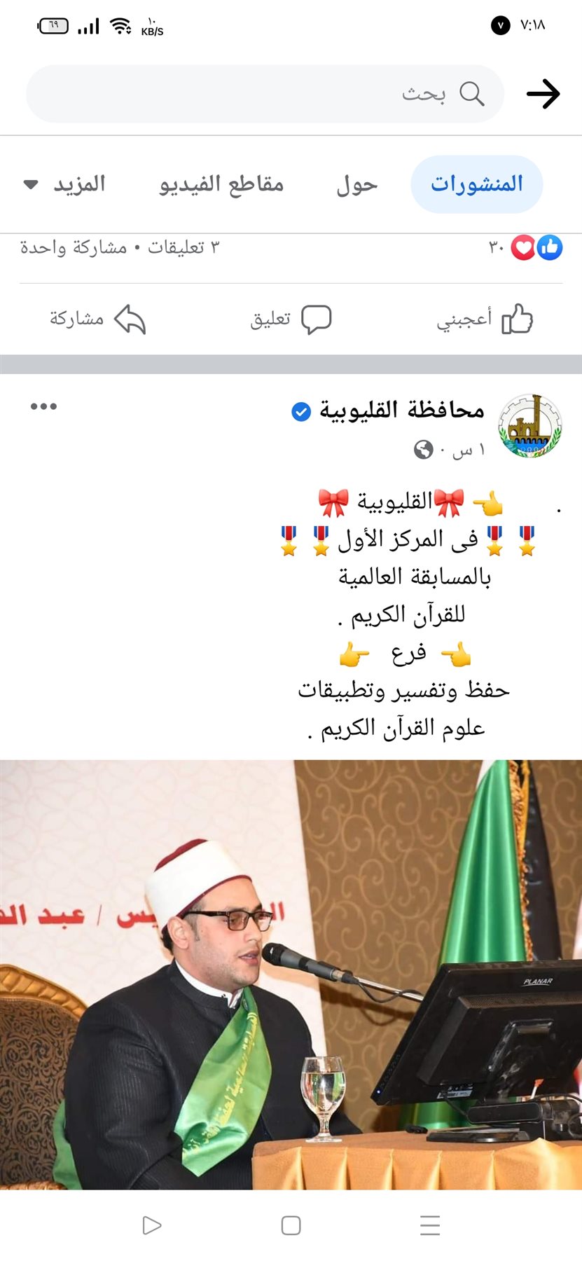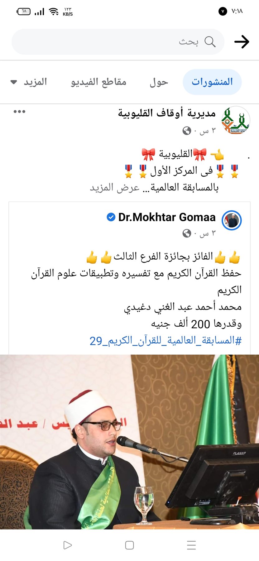 وتقدمت مديرية أوقاف القليوبية وعدد من زملاء المتسابق الفائز بعدد من التهنئات والتبريكات له، متمنين له دوام التوفيق والنجاح.