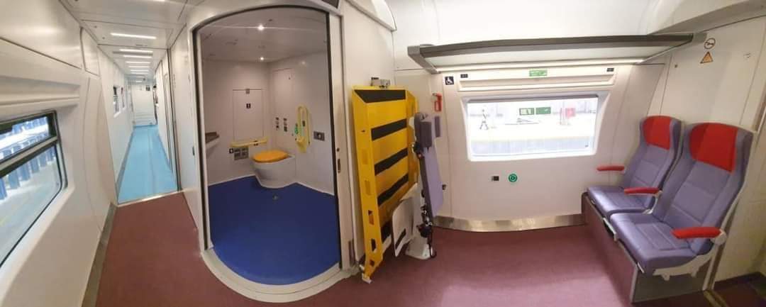 ومن أبرز التيسيرات على جمهور الركاب من ذوي الإعاقة تخصيص أماكن في عربات القطارات سواء في الدرجة الأولي أو الثانية، تكون مجهزة بأحدث سبل الأمان، ويتم ربطها بأحزمة لمنع تحركها خلال أثناء توفقها بالمحطات، كما تم إضافة دورات مياه مخصصة لهم بمساحة جيدة تسمح بحركة الكراسي المتحركة وتكون مزودة بأحزمة لربط الكرسي ومنعه من التحرك، كما أنها مزودة بيد حديدة مثبتة يمكن استخدامها حالة الجلوس علي مقعد الحمام.
