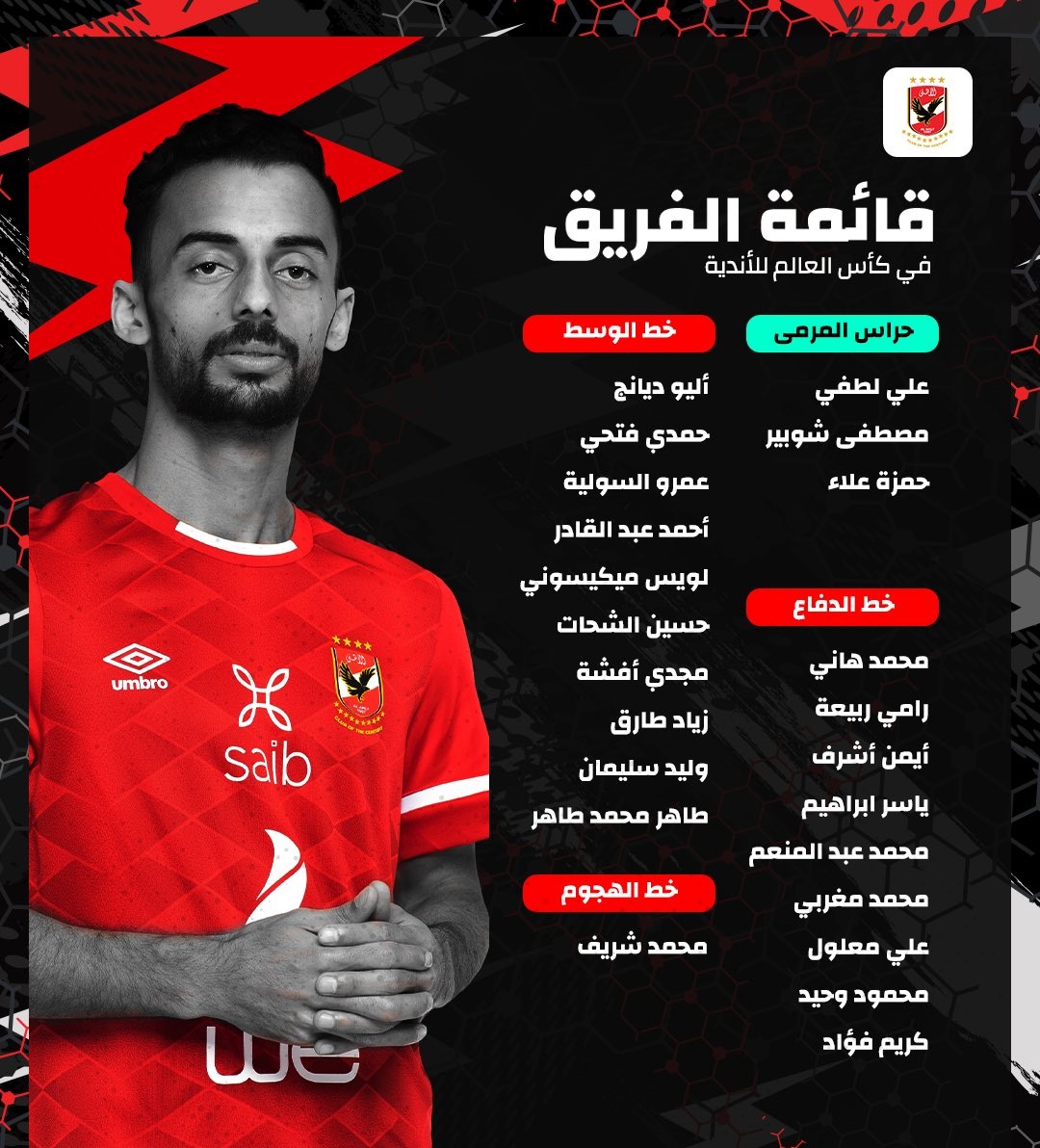 نقدم لكم تشكيل الأهلي المتوقع لمواجهة ريال مدريد اليوم في نصف نهائي كأس العالم للأندية 2023.
