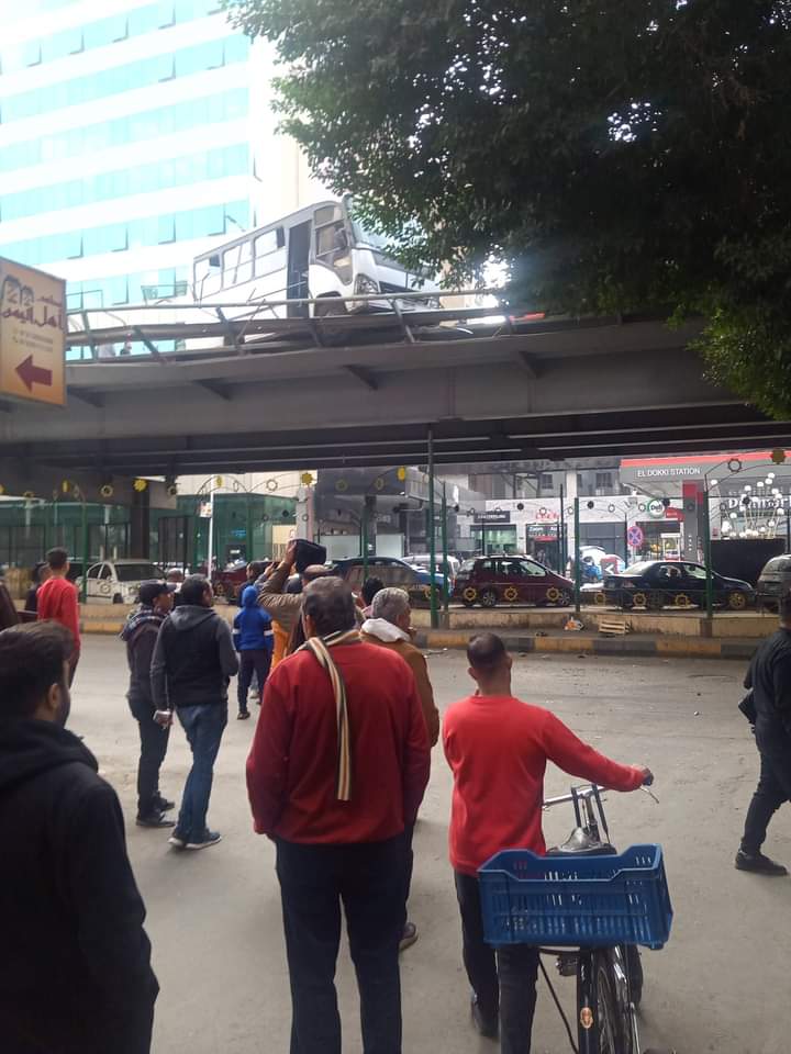 تلقت غرفة عمليات النجدة بمديرية أمن الجيزة، بلاغا يفيد باصطدام ميني باص بالسور الحديدي لكوبري الدقي المعدني، وعلى الفور انتقلت الأجهزة الأمنية مدعومة بسيارات الإسعاف، وبالفحص تبين أنه أثناء سير ميني باص اختلت عجلة القيادة بيد السائق، مما تسبب في انحرافها واصطدام السيارة بسور الكوبري وتعلقه بالسور.