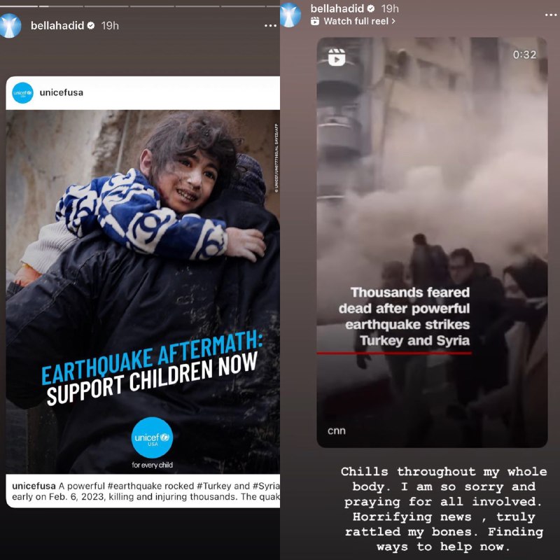 وشارك كاميلا كابيو وإنريكي أغليسياس في جمع التبرعات لضحايا زلزال سوريا وتركيا، كما دعمت سيلينا جوميز الضحايا والمتضررين من الزلزال، وشاركت في جمع التبرعات، كما شاركت بيلا وجيجي حديد في حملة التبرعات لضحايا زلزال تركيا وسوريا.