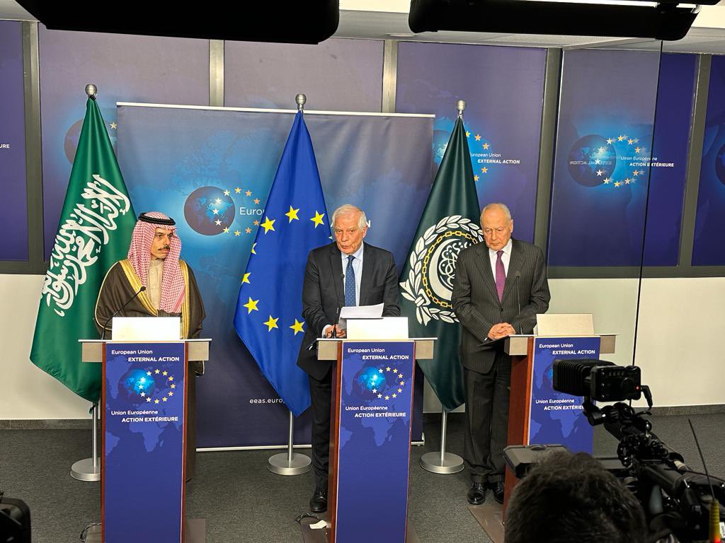 وأوضح الأمين العام لجامعة الدول العربية، خلال مؤتمر صحفي للأطراف الثلاثة عن اللقاء، أنه لقاء مهم برفقة وزير الخارجية السعودي وممثل الخارجية الأوروبي، مؤكدًا أن الهدف كان العمل على تعزيز مبادرة السلام العربية وإحياء جهود صنع السلام بالشرق الأوسط.