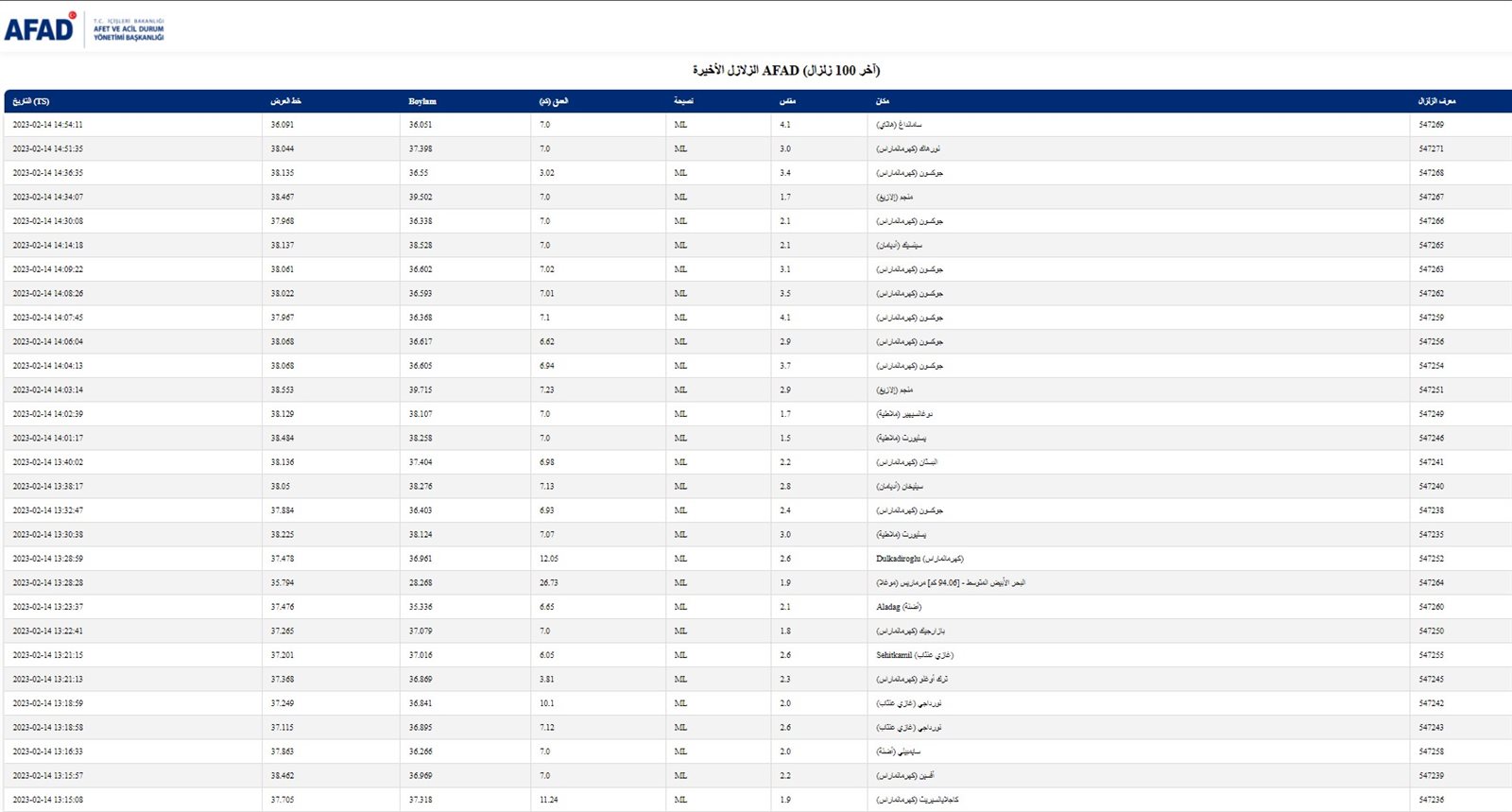 رصدت إدراة الكوارث والطوارئ التركية آفاد، أكثر من 100 هزة أرضية تعرضت لها البلاد منذ بداية اليوم الثلاثاء، بمختلف الأنحاء.