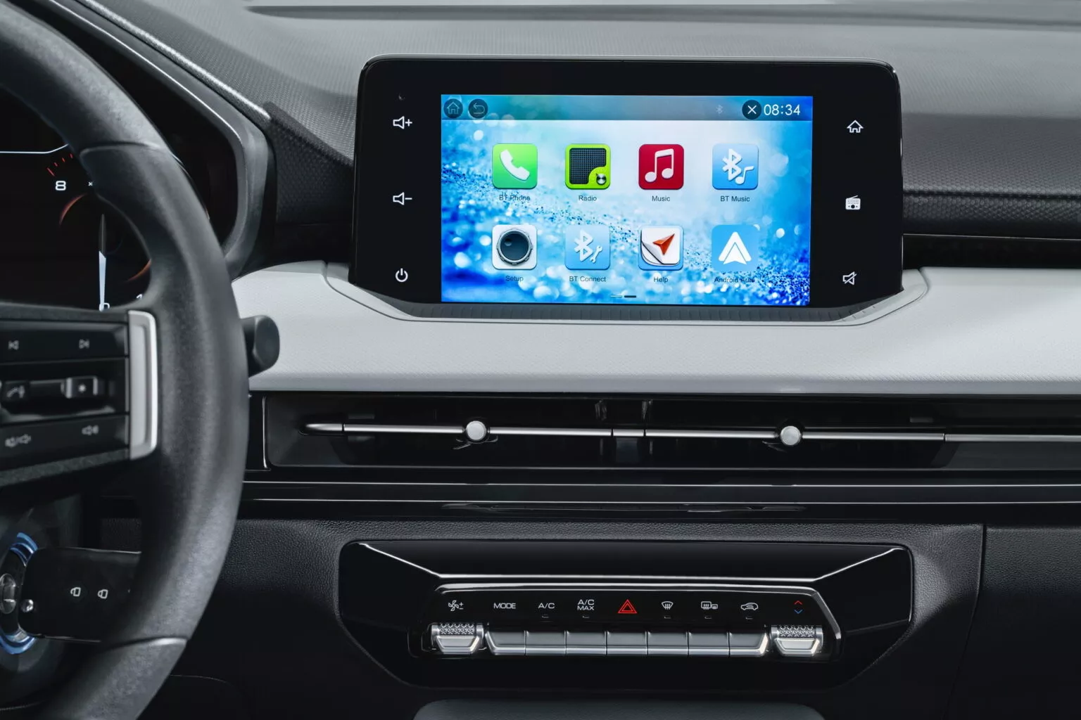ويتوافق نظام المعلومات والترفيه مع Apple CarPlay وAndroid Auto، بينما تشتمل المعدات أيضًا على تكييف هواء أوتوماتيكي ونظام صوتي بأربعة مكبرات صوت وكاميرا خلفية ومستشعرات وقوف السيارات الخلفية.