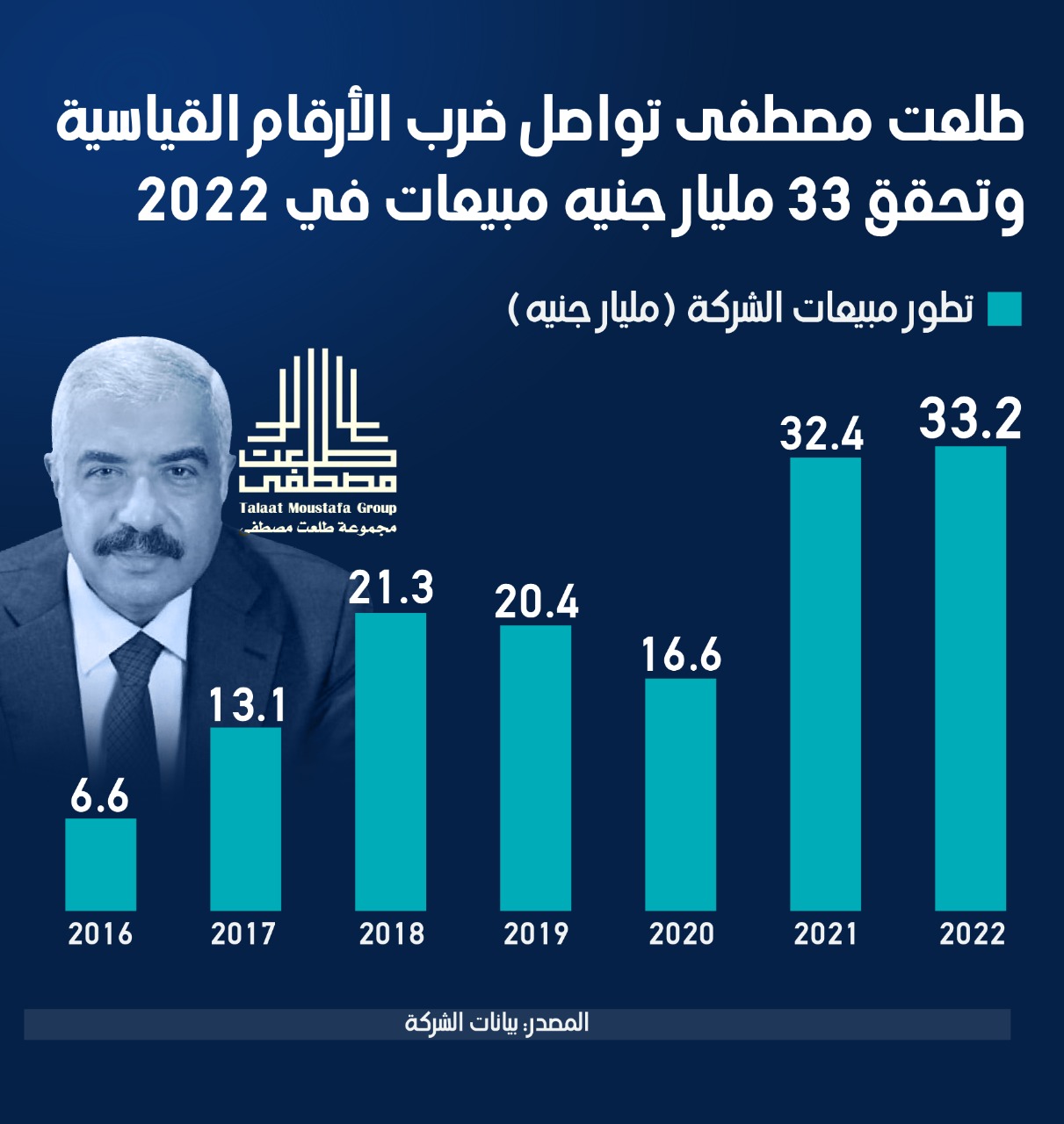 حققت مجموعة طلعت مصطفى القابضة، صافي مبيعات ضخمة وغير مسبوقة بلغت 33.2 مليار جنيه عن السنة المالية 2022، محطمة بذلك رقم مبيعاتها غير المسبوق بالسوق العقارية المحقق في العام الماضي وبما يتخطى مستهدف مبيعاتها لعام 2022 المتوقعة والبالغة 26.24 مليار جنيه بواقع 28%.