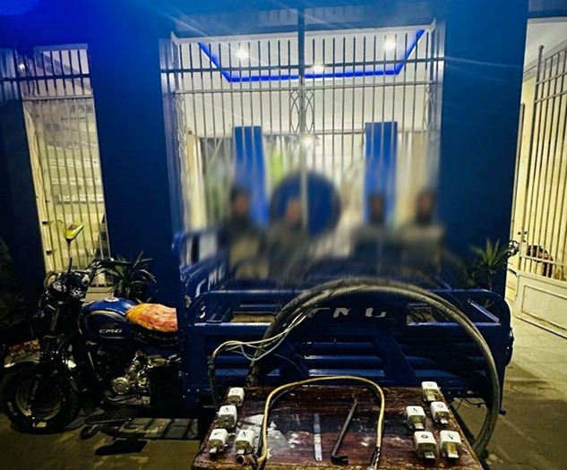 وتم ضبط شخصين لهما معلومات جنائية حال استقلالهما تروسيكل بدون لوحات معدنية قيادة أحدهما بدائرة قسم شرطة الخليفة، وبحوزتهما مصهر كهرباء جهاز مقاومة - أجنه حديد - منشار حديدي - 2 كابل نحاس رئيسي بطول 2 متر المسئول عن توزيع الكهرباء بالمنطقة المحيطة بكابينة الكهرباء وذلك أثناء محاولتهما سرقة إحدى كبائن الكهرباء بدائرة القسم، وإحداث تلفيات بعدة أسلاك به.