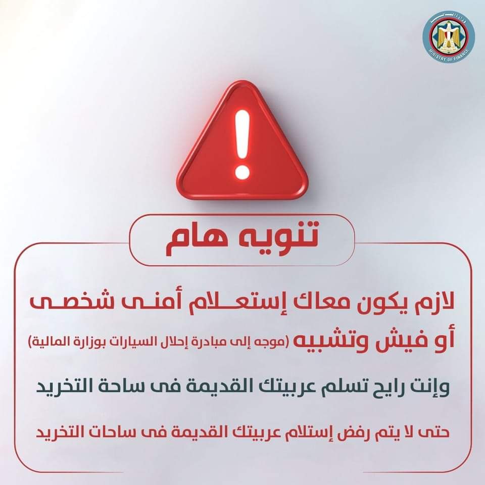 كما ذكرت: خلال الفترة الأخيرة، لاحظنا أن هناك عددا من المشاركين يذهب إلى ساحة التخريد لتسليم سيارته القديمة ومعه استعلام أمني على السيارة فقط دون إحضار استعلام أمني شخصي على صورة بطاقة الرقم القومي.