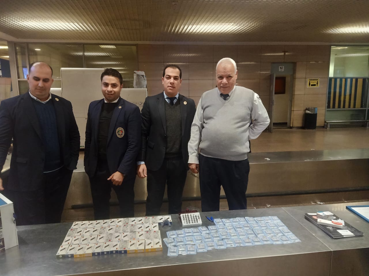 إحباط تهريب مستحضرات تجميل ومستلزمات طب أسنان وتليفونات في مطار القاهرة