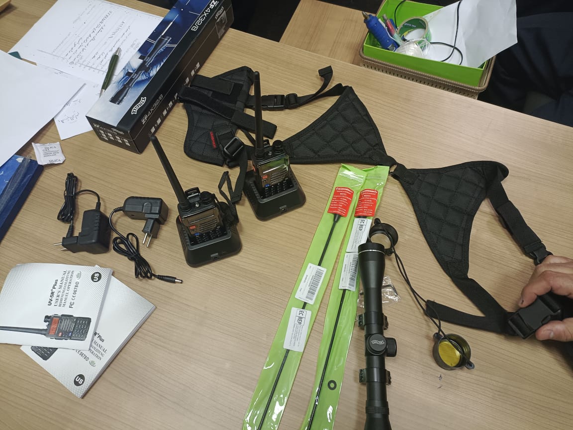 ضبطت سلطات جمارك مطار القاهرة الدولي، راكب مصري بحوزته منظار يتم تركيبه على سلاح وجهازي لاسلكي وجراب سلاح.