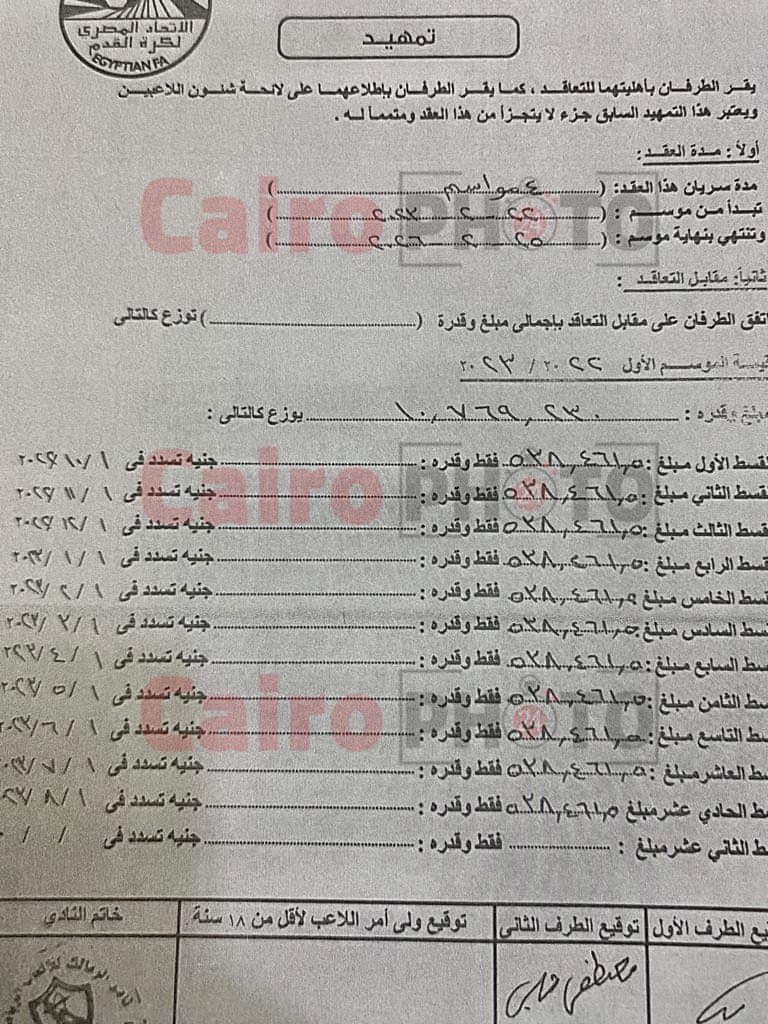 وتأتي التفاصيل المالية لقد مصطفى شلبي مع الزمالك، على النحو التالي:-