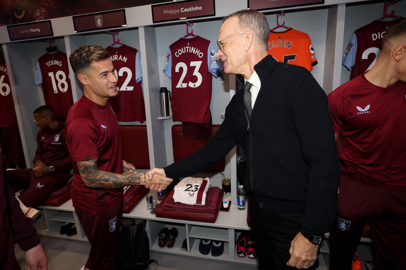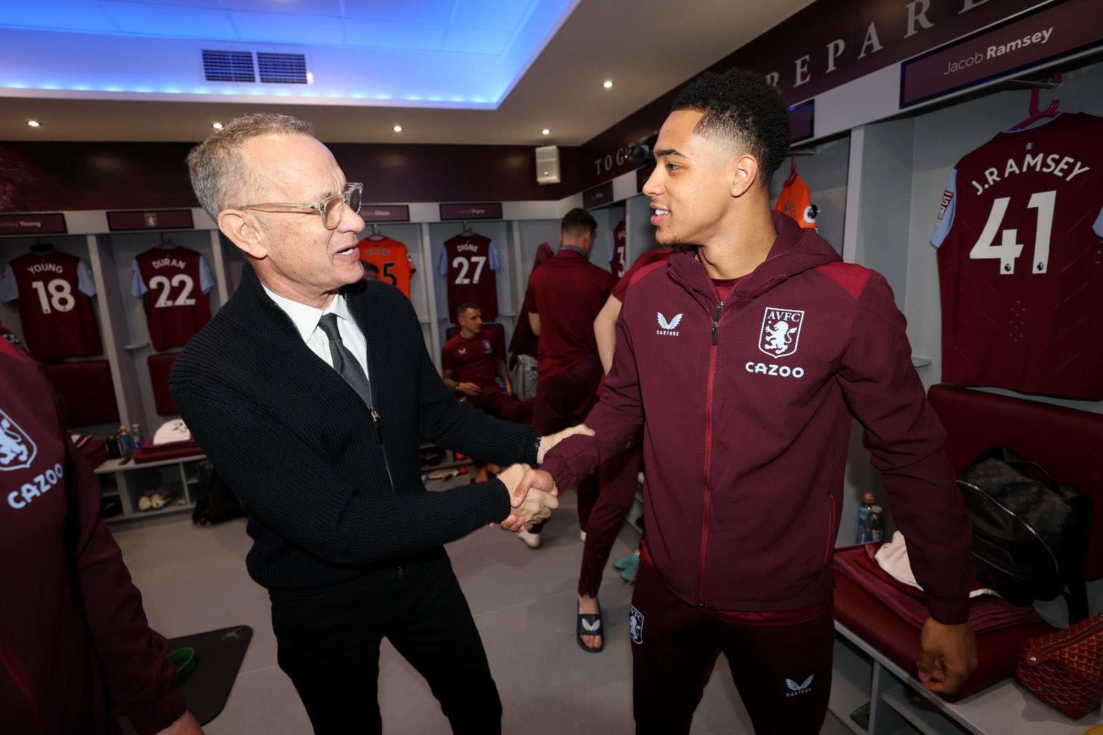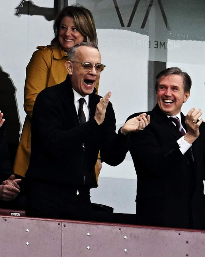 والتقط عدسات ملعب فيلا بارك الممثل توم هانكس من المدرجات، وهو يحتفل بهدف فريق أستون فيلا، الذي سجله أولي واتكينز في الدقيقة 6 من عمر المباراة.